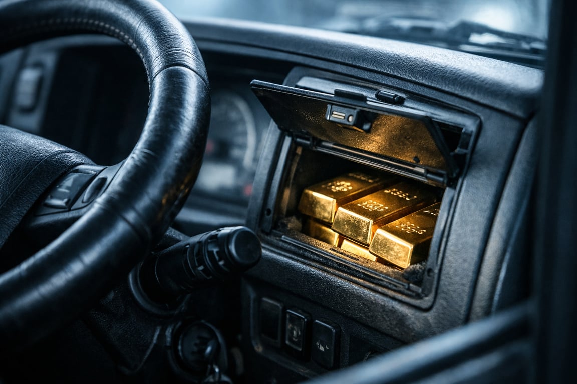 Tijdens de gerichte controle hielden inspecteurs zich niet bij de standaardchecks en openden ook lastig bereikbare plekken in de cabine. Onder het stuur bleek een verborgen pakket te liggen dat bleek gevuld met meerdere goudstaven.