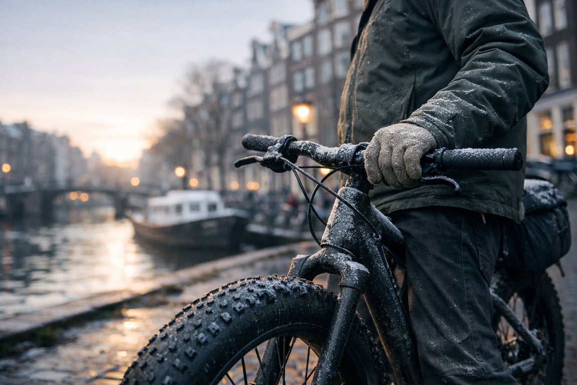 Ton Werkhoven uit Amsterdam, 72 jaar, is een goed voorbeeld van iemand die bewust voor een fatbike koos en daar blij mee is. Met een kunstknie is een lage instap voor hem geen luxe maar noodzaak, en een stevig bagagerek maakt de fiets praktisch voor dagelijks gebruik.