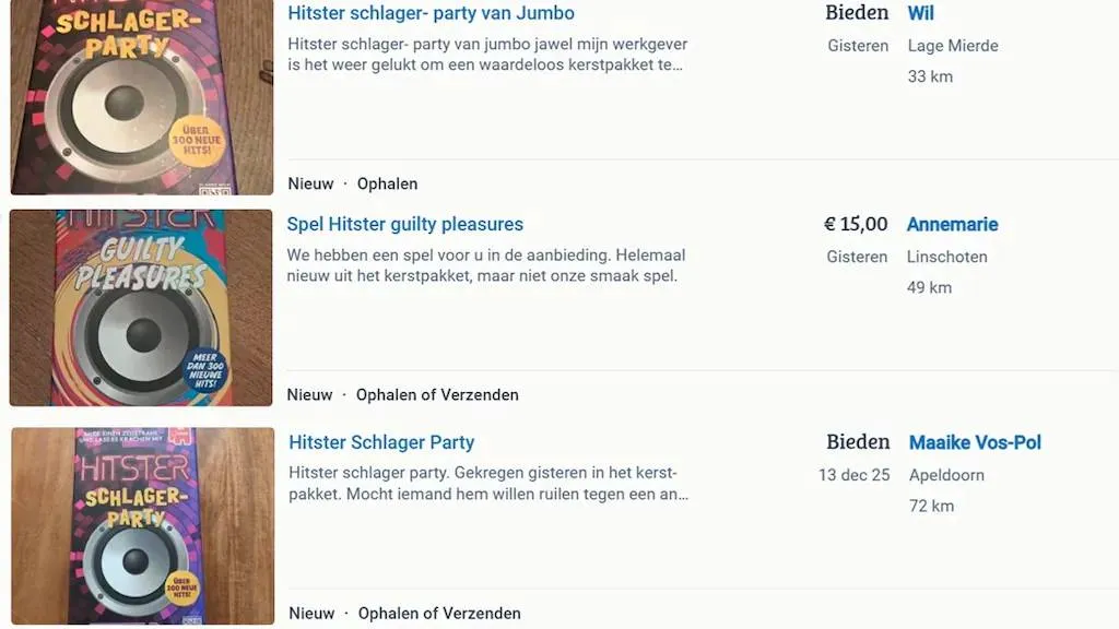 Marktplaats toont het resultaat: hordes advertenties met kerstgeschenken die werknemers in een paar klikken van de hand doen. Het platform functioneert als afvoerput voor alles wat niet gewaardeerd wordt — en dat vertelt iets over veranderende voorkeuren en de commerciële waarde van een cadeau.