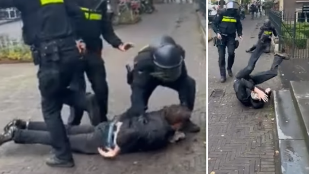 “ME-er geeft rake beenveeg”, luidt de korte beschrijving bij de video die op Instagram verscheen. De beelden tonen drie personen in zwarte uniformen met helmen die een persoon op de grond houden, terwijl één van de handhavers zijn arm naar achteren heeft in een sterke grip.