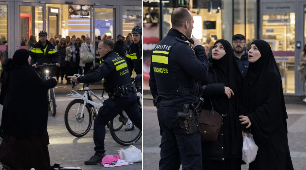 Een tegenstrijdig tafereel in een drukke winkelstraat wordt binnen minuten een onderwerp op sociale media. Een handhaver in gesprek met meerdere vrouwen, nieuwsgierige voorbijgangers en enkele telefoons die filmen: dat is voldoende om de aandacht van honderden, soms duizenden mensen te trekken.