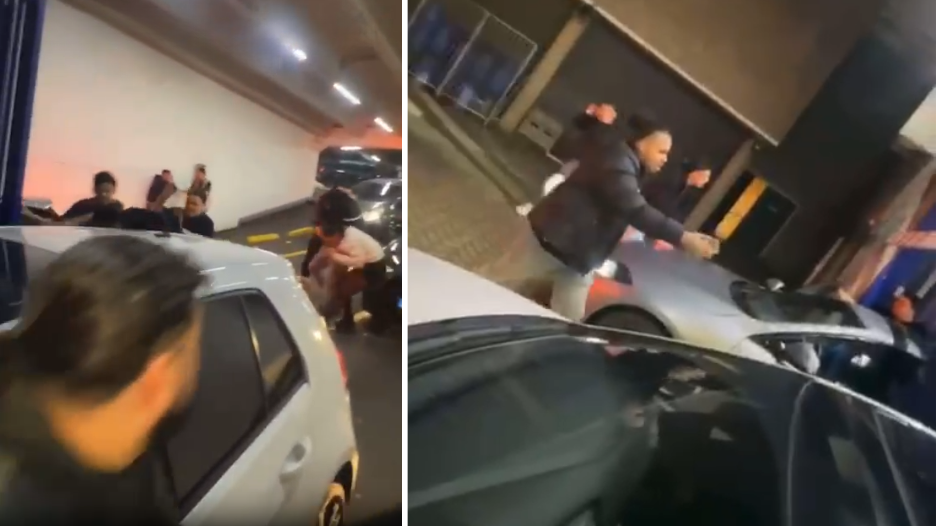– Meerdere mannen en vrouwen raakten slaags in een Nederlandse parkeergarage, vastgelegd op video.
